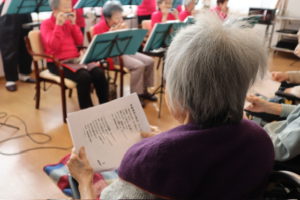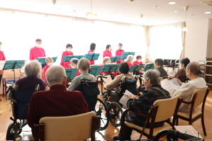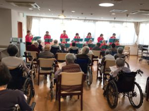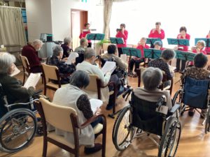 演奏に合わせて10曲の童謡、歌謡曲を歌いました。